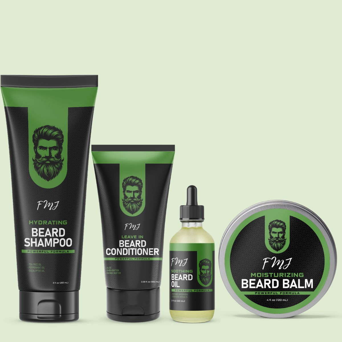 Keep your beard looking and feeling healthy with our FMJ bundle. Cleanse, hydrate, soothe, and seal with this 4 step system.
